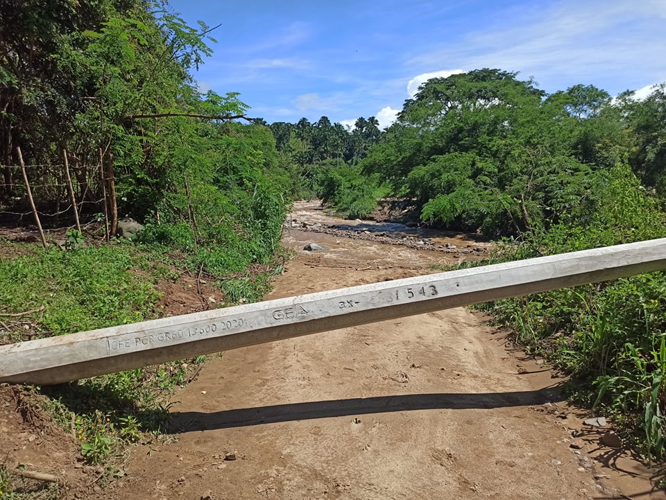 We somehow avoid the dips and crevices in front of us and using our most aggressive 4×4 driving get to the second river crossing. A tree and downed power lines block the road so access is only on foot from here. We leave the car and attempt to cross. Pretty much as soon as we take a few strides the water is above our knees and strongly trying to push us under. We abandon that idea and try to circumvent this and the next crossing by hiking through a local neighbourhood which a local lady showed us the last time we tried this. We head in that direction and find more downed power lines and a cement electrical pole fully across the road. We climb over the pole and are met with a cliff like drop off to the river. The road is gone. Not washed out or damaged or replaced with holes and rocks. It’s gone. A road that has been there for decades and only a month previously had dump trucks up and down it all day is no more. The river burst its banks and took it away.