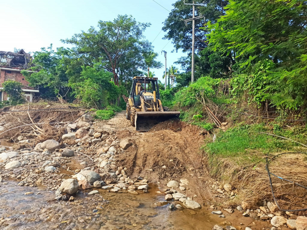 We arrive in San Pancho early Saturday afternoon. The river levels have dropped considerably from the night before but we notice straight away the speed and volume of the water. We take a different route off the highway as our usual exit immediately appears damaged. We reach the river and can see that things have changed. The whole river is much wider as the banks have been flattened. The bushes and hedgerows and small trees that lined the river are gone. The usual road from the highway is entirely destroyed. Replaced with deep pits and pointy rocks. The first river is fast flowing and on both sides are steep drops making it impossible to cross even if you could get to it.